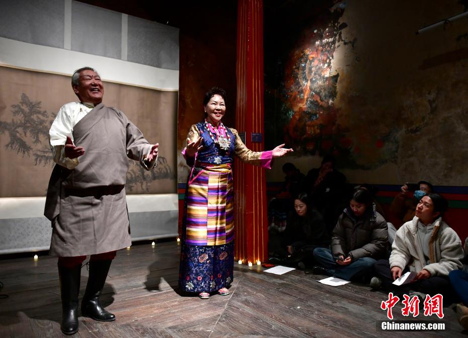 12月23日晚,西藏拉薩吉本崗藝術(shù)中心舉行吉光之夜活動。朗瑪堆諧、扎木念彈唱、熱巴舞等非遺展演,吸引眾多民眾共同領(lǐng)略西藏非物質(zhì)文化遺產(chǎn)的無窮魅力。圖為扎木念彈唱《甲林賽》。中新社記者 李林 攝