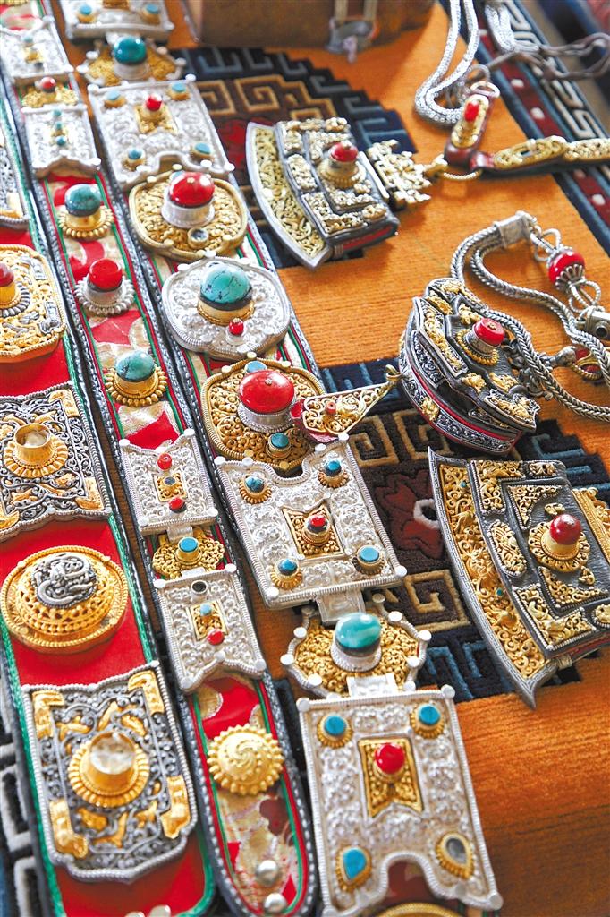 銅像鍛造師丁巴曲培打造的民族配飾。 記者 貢秋曲措 攝