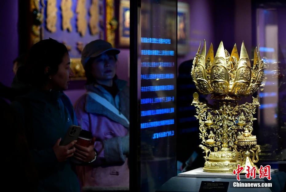 以“見證與守望——鑄牢中華民族共同體意識(shí)主題展”為主題的展覽近日亮相西藏自治區(qū)拉薩市布達(dá)拉宮珍寶館。本次主題展精選100余件文物珍品,展覽通過文物、古籍及布達(dá)拉宮的傳承與發(fā)展,講述各民族交往交流交融的故事。圖為1月2日,觀眾欣賞展覽中的明代“大明永樂年施”款八瓣蓮花大威德金剛曼陀羅。中新社記者 李林 攝