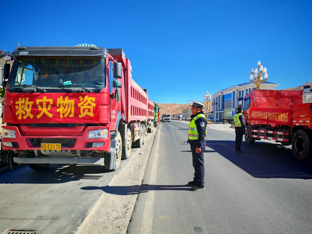 一輛輛物資車,滿載著重振災(zāi)區(qū)的曙光,源源不斷地向災(zāi)區(qū)輸送急需的生活物資??拐鹁葹?zāi)分秒必爭,交警大隊、查務(wù)一級公安檢查站聯(lián)合各鄉(xiāng)鎮(zhèn)派出所的民輔警們化身保通員,在關(guān)鍵路段與交通樞紐織就一張24小時不間斷的道路保通“守護網(wǎng)”,全力保障駛向定日重災(zāi)區(qū)的物資運輸車一路暢行。破曉,晨曦微露,他們已精神抖擻地站在崗位,為物資車指引方向;深夜,萬籟俱寂,他們依舊堅守,哪怕嗓音沙啞,仍堅定指揮調(diào)度。他們時刻保持警惕,全力以赴確保這條 “生命通道” 暢通無阻,讓物資以最快速度送達受災(zāi)群眾手中。