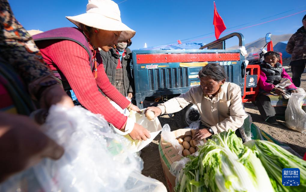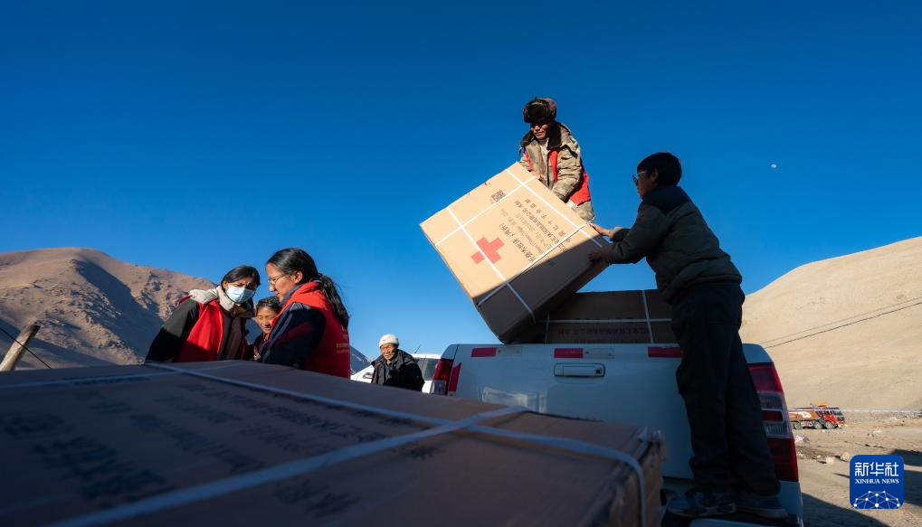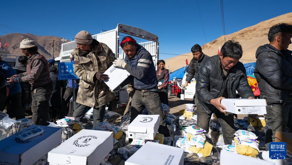 1月10日,在定結(jié)縣郭加鄉(xiāng)切村安置點,群眾分配救災(zāi)物資。新華社記者 丁增尼達 攝