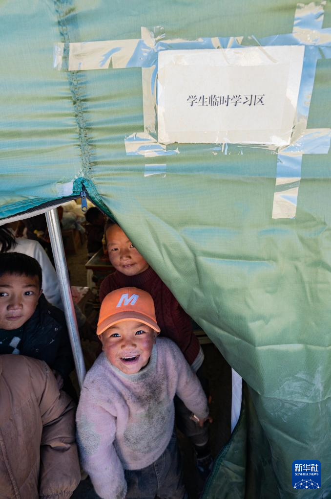 1月10日在定結(jié)縣郭加鄉(xiāng)乃村安置點學生臨時學習區(qū)拍攝的孩子們。新華社記者 丁增尼達 攝