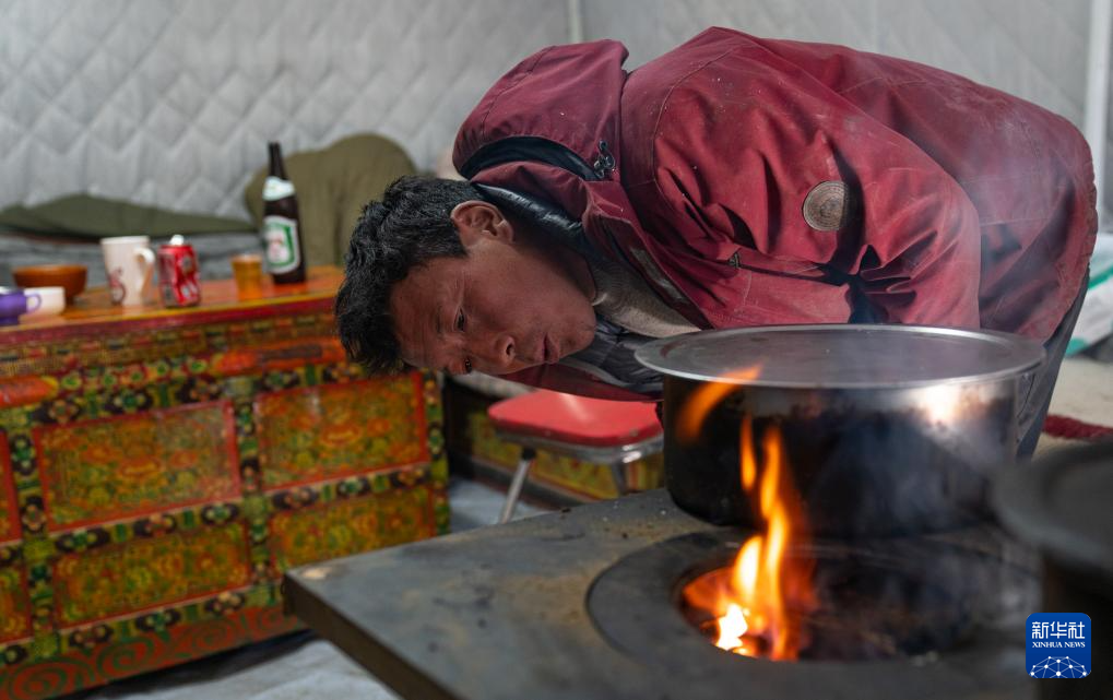 1月10日,在定結(jié)縣郭加鄉(xiāng)切村安置點,群眾在救災(zāi)帳篷里生火。新華社記者 丁增尼達 攝