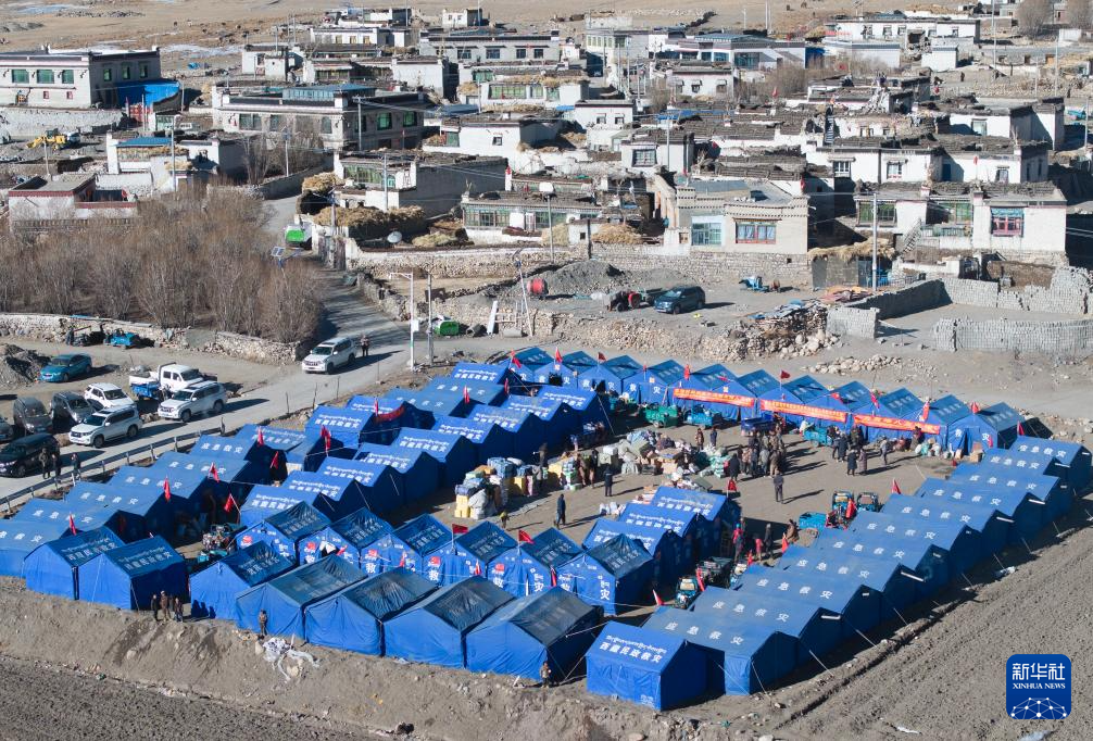 1月11日拍攝的薩迦縣麻布加鄉(xiāng)普村安置點(diǎn)(無(wú)人機(jī)照片)。新華社記者 李響 攝