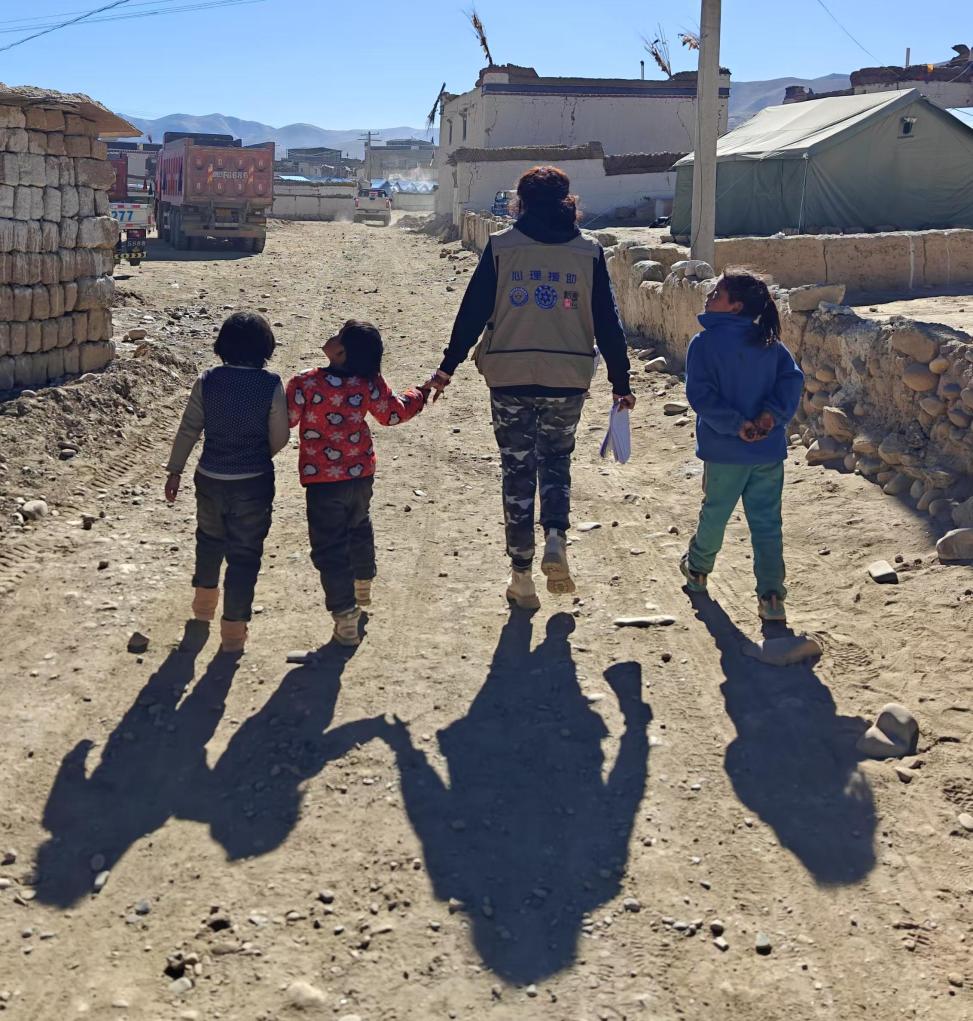 1月9日深夜,譚惜仁等4名隊員趕到了定日縣。10日她來到西藏森林消防總隊特勤大隊負(fù)責(zé)的措昂村安置點,原計劃為森林消防隊員提供心理服務(wù),沒想到戰(zhàn)士們說:“老百姓和孩子們更需要!”