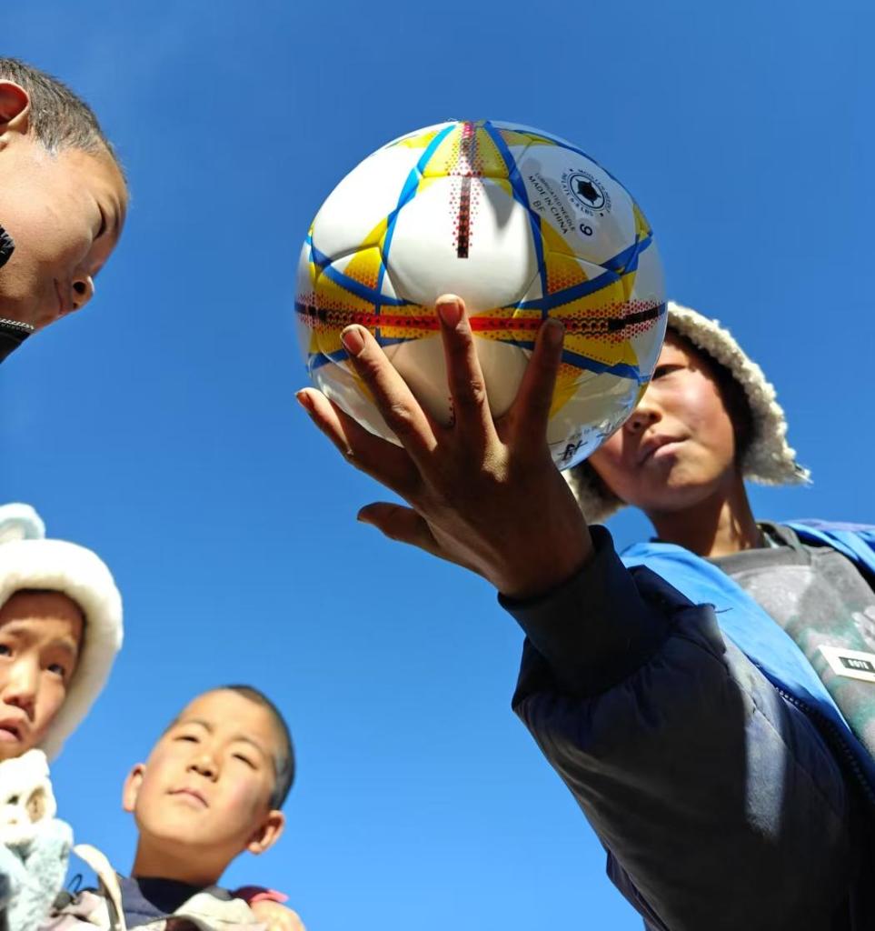 男孩子們喜歡踢球,譚惜仁給他們找來足球,兩個土塊一擺就是球門,開踢。他們給自己起了個響亮的名字——“牦牛隊”!