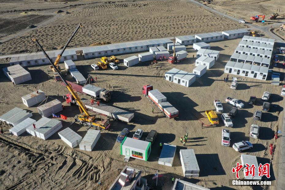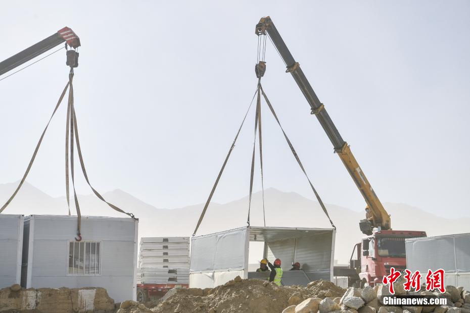 1月7日9時(shí)5分,西藏自治區(qū)日喀則市定日縣發(fā)生6.8級(jí)地震,震源深度10公里。災(zāi)情就是命令,當(dāng)?shù)卣推髽I(yè)迅速行動(dòng),目前災(zāi)區(qū)多個(gè)鄉(xiāng)村都在加緊進(jìn)行保溫板房建設(shè),只為讓受災(zāi)民眾早日擁有“安心巢”。據(jù)了解,每間板房有18平方米,可容納4到5人,板房設(shè)有折疊床、桌子、爐子等,并保障民眾用電需求,讓他們更好地度過(guò)冬天。圖為1月10日,西藏日喀則市定日縣措果鄉(xiāng)嘎熱果吉村保溫板房建設(shè)現(xiàn)場(chǎng)。中新社記者 貢嘎來(lái)松 攝