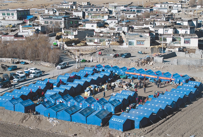 薩迦縣整體受災(zāi)情況如何,薩迦縣委副書記于治花告訴記者:“截至1月10日中午,全縣受災(zāi)最嚴(yán)重的4個鄉(xiāng)鎮(zhèn)共有3名群眾受輕傷,排查出不同程度受損房屋3957間,局部倒塌53戶,牲畜沒有傷亡。全縣共有26個集中安置點,其余群眾分散安置在各自的村里,帳篷基本實現(xiàn)一戶一頂,后續(xù)物資還在運送當(dāng)中?!?/p>