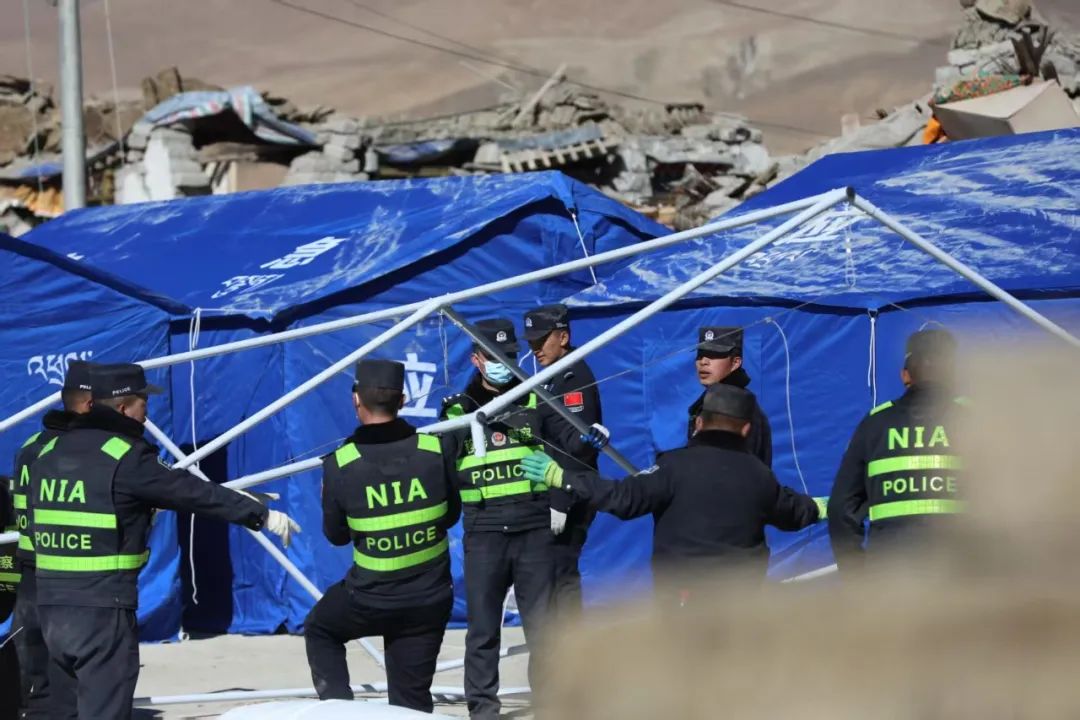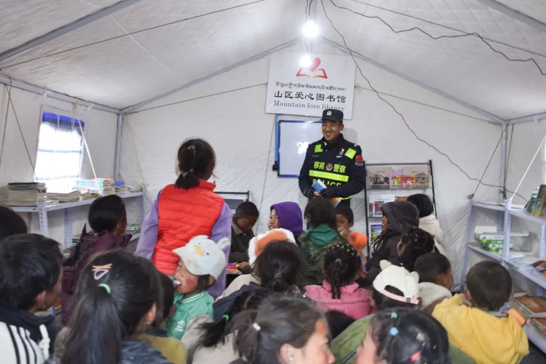 地震發(fā)生后,西藏邊檢總站日喀則邊境管理支隊(duì)救援民警不知疲倦地奔走在震中3個(gè)受損嚴(yán)重的村莊,了解震后群眾生產(chǎn)生活情況,協(xié)助解決面臨的各種困難問題。面對(duì)240頂帳篷,230戶1200余名災(zāi)民,民警們組建了抗震救災(zāi)雜村、嘎布村和玉白村臨時(shí)警務(wù)室,配備警力30人,實(shí)行24小時(shí)勤務(wù)模式,主要承擔(dān)交通疏導(dǎo)、宣傳教育、隱患排查、秩序維持、輔導(dǎo)功課、協(xié)助地方開展其他救援等任務(wù),同時(shí)設(shè)置常用藥箱,方便群眾用藥需求,被群眾親切地稱為“建在身邊的派出所”。