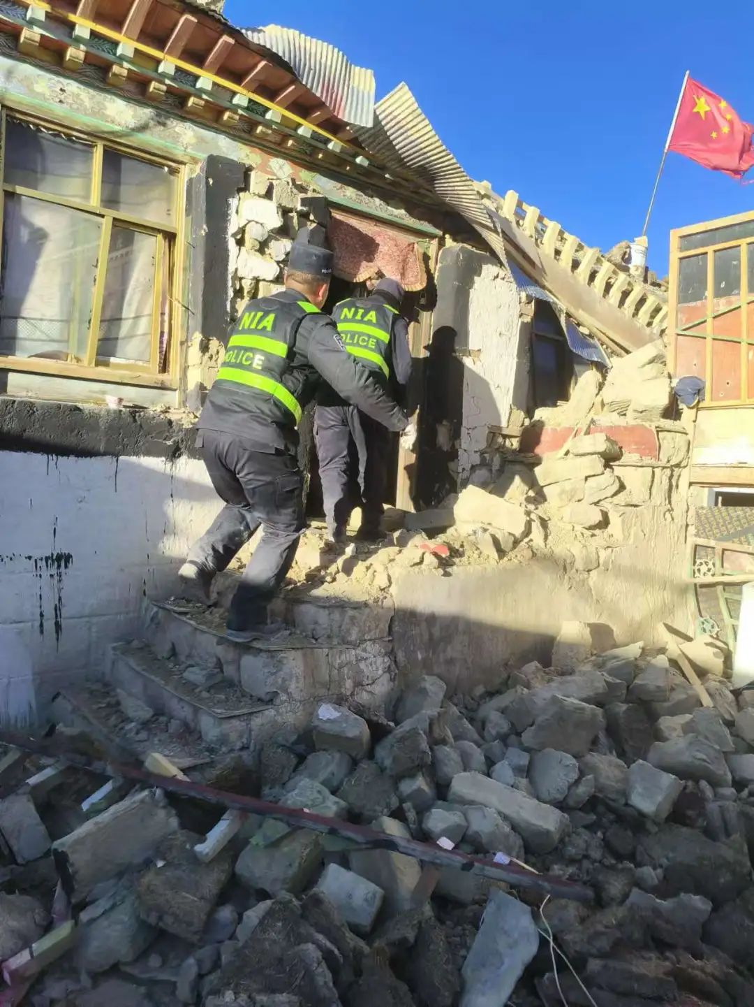 民警在得知情況后,第一時(shí)間了解次仁多布杰房屋的受災(zāi)情況,在確認(rèn)無(wú)二次坍塌情況下,請(qǐng)示上級(jí)領(lǐng)導(dǎo),經(jīng)同意后,協(xié)調(diào)雜村村委會(huì)、雜村安置區(qū)負(fù)責(zé)人員前往村民次仁多布杰家里幫助戶主搶救貴重財(cái)產(chǎn),18時(shí)39分,次仁多布杰屋內(nèi)貴重物品全部轉(zhuǎn)移完畢,救援民警才撤離現(xiàn)場(chǎng)。這仿佛在傳遞著一種無(wú)聲的力量:有我們?cè)?,別害怕。