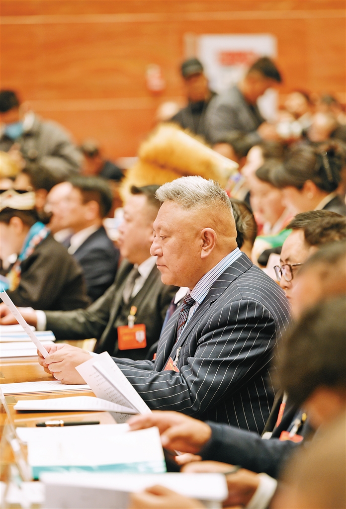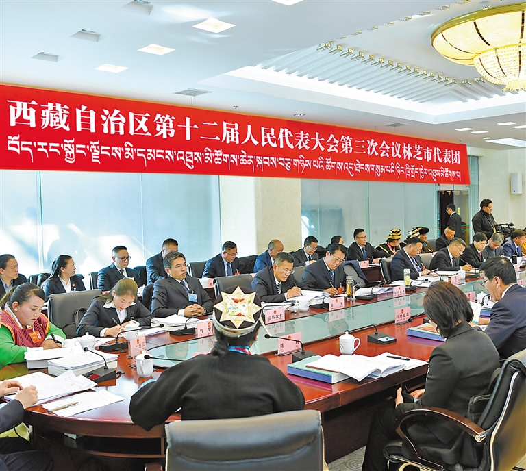 林芝市代表團(tuán)審議政府工作報(bào)告。記者 次仁平措 攝