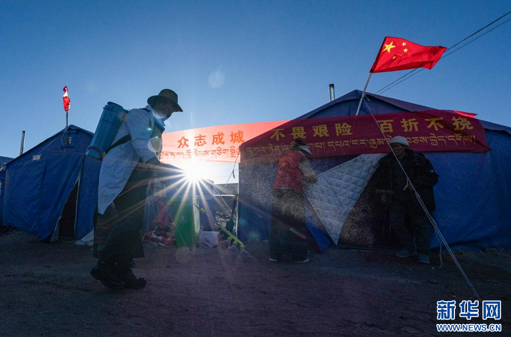 1月10日,在定結(jié)縣郭加鄉(xiāng)乃村安置點(diǎn),村民在進(jìn)行消殺工作。 新華社記者 丁增尼達(dá) 攝