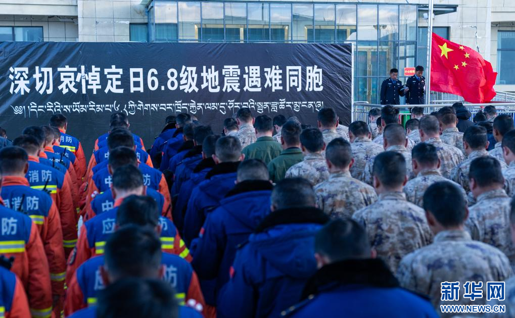1月13日上午9時(shí)30分,西藏定日6.8級地震遇難同胞悼念儀式在受災(zāi)最嚴(yán)重的長所鄉(xiāng)舉行。參與救援的解放軍和武警官兵、消防救援人員、公安民警、醫(yī)護(hù)人員、青年志愿者及有關(guān)企業(yè)員工、干部職工、震區(qū)群眾代表數(shù)百人,脫帽肅立,向遇難同胞默哀3分鐘。 新華社記者 丁增尼達(dá) 攝