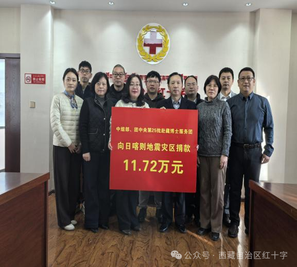 2025年1月7日,西藏日喀則市定日縣不幸遭受6.8級地震重創(chuàng),導(dǎo)致重大人員傷亡及財(cái)產(chǎn)損失。1月14日,中組部、團(tuán)中央第25批赴藏博士服務(wù)團(tuán)響應(yīng)黨中央號召順利抵達(dá)拉薩。雖然大家還沒完全克服高反帶來的不適,但災(zāi)情深深牽動著所有博士服務(wù)團(tuán)成員的心,大家紛紛表示要捐款為災(zāi)區(qū)略盡綿薄之力。應(yīng)大家的要求,1月17日,博士服務(wù)團(tuán)舉行了抗震救災(zāi)募捐活動,共籌集善款11.72萬元。