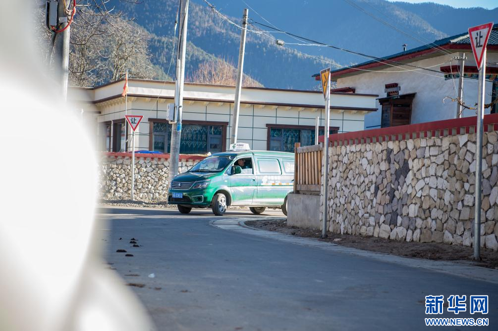 1月19日,西藏林芝市“郵快合作”新配備的郵遞車穿行在鄉(xiāng)村小巷。新華網(wǎng) 旦增努布 攝