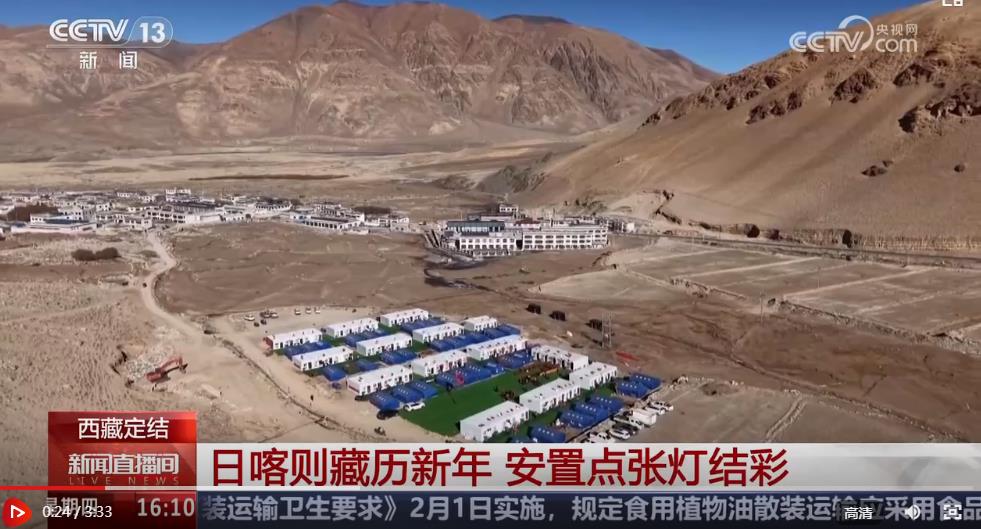 總臺央視記者 王莉:我現(xiàn)在是在日喀則定結(jié)縣的切村,今天是這里藏歷年的大年初一,是當(dāng)?shù)匾荒曛凶盥≈?、最重要的傳統(tǒng)佳節(jié)??梢钥吹?,現(xiàn)場已經(jīng)裝點得很有節(jié)日的氛圍,家家戶戶都貼上了春聯(lián),掛上了喜慶的燈籠和福字。雖然今年在安置點里過年,但人們依然保持著傳統(tǒng)的習(xí)俗,在這一天,一定要穿上隆重的藏裝,一起吃一頓團圓飯。