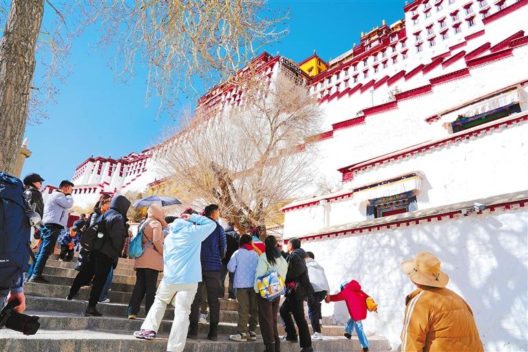 圖為春節(jié)假期期間,游客在參觀布達(dá)拉宮。本報(bào)記者 平措次仁 攝