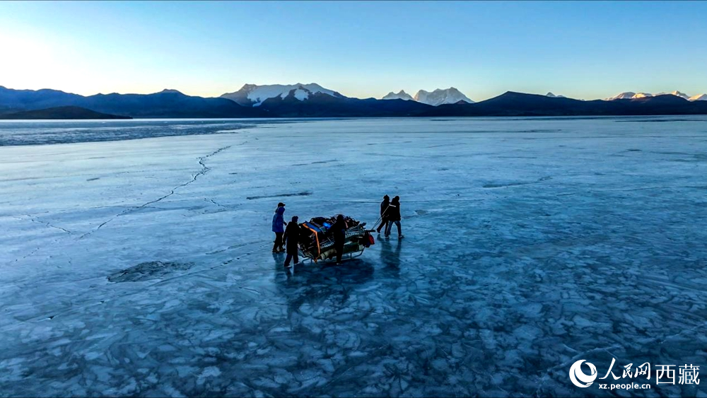 普莫雍錯(cuò)“冰上趕羊”,是當(dāng)?shù)啬撩袷来鄠鞯墓爬现腔?。每年冬季,由于推瓦村海拔高、夏季短,草?chǎng)無(wú)法為羊群提供充足的過(guò)冬飼料。因此,每年高原最冷的時(shí)候,推瓦村牧民會(huì)把羊群趕到普莫雍錯(cuò)水草豐茂的湖心島,依靠島上的草料度過(guò)最寒冷的冬期。