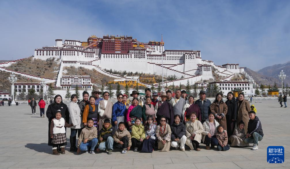 2月28日,來自西藏那曲市比如縣的一家人在拉薩布達拉宮前合影留念。