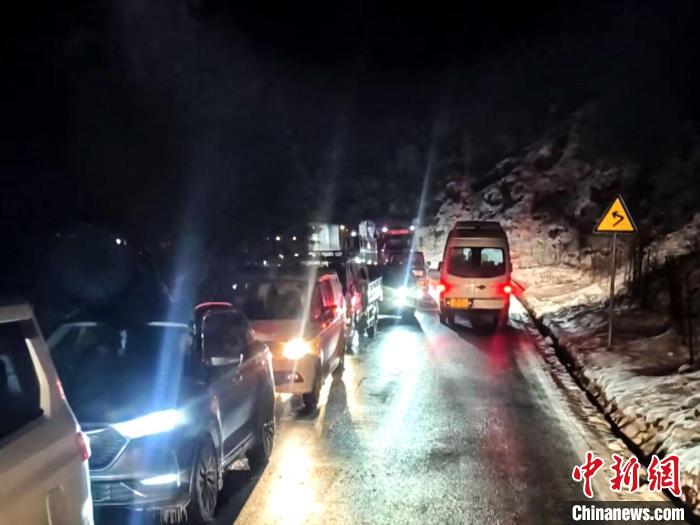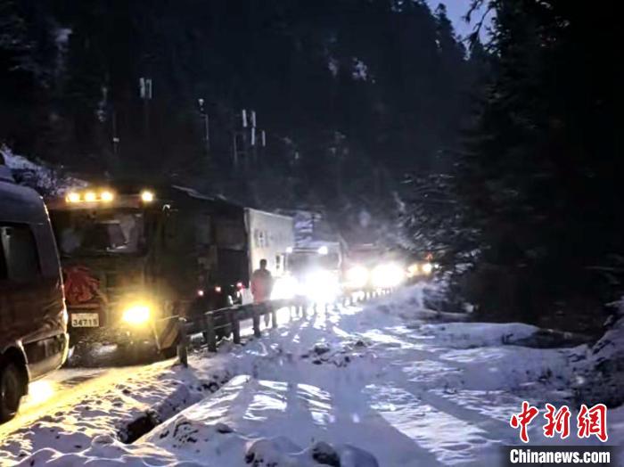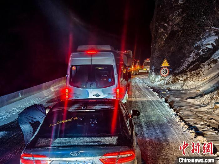 當(dāng)夜幕降臨之時(shí),大風(fēng)夾著雪粒呼嘯不止,山上的氣溫也越來(lái)越低,部分司乘人員出現(xiàn)焦慮,官兵們一邊耐心地安撫司乘人員焦急的情緒,一邊有條不紊地指揮車(chē)輛緩緩挪動(dòng)。