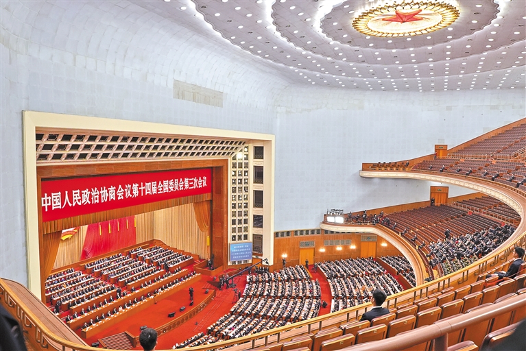 圖為3月10日上午,中國(guó)人民政治協(xié)商會(huì)議第十四屆全國(guó)委員會(huì)第三次會(huì)議在北京人民大會(huì)堂閉幕。記者 旦增平措 次旦央吉 攝
