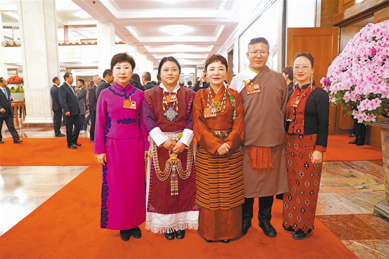圖為住藏全國(guó)政協(xié)委員與其他政協(xié)委員合影留念。記者 旦增平措 次旦央吉 攝