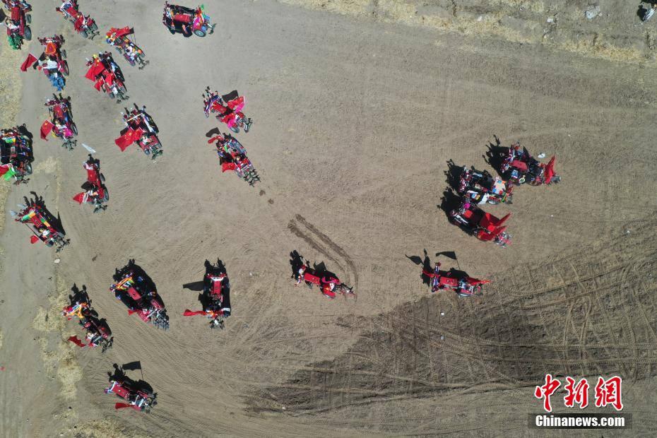 3月16日,西藏拉薩迎來一年一度的傳統(tǒng)春耕儀式。當(dāng)日,拉薩市曲水縣色達(dá)村村民身著節(jié)日盛裝,相聚在田間,載歌載舞,共同迎接春耕第一犁。家家戶戶端著自家的“切瑪”(象征五谷豐登)帶著青稞酒、酥油茶等物品聚在田間,互敬青稞酒,開始撒種,祈求全年風(fēng)調(diào)雨順、五谷豐登。圖為曲水縣色達(dá)村春耕儀式現(xiàn)場(chǎng)(無人機(jī)照片)。中新社記者 貢嘎來松 攝