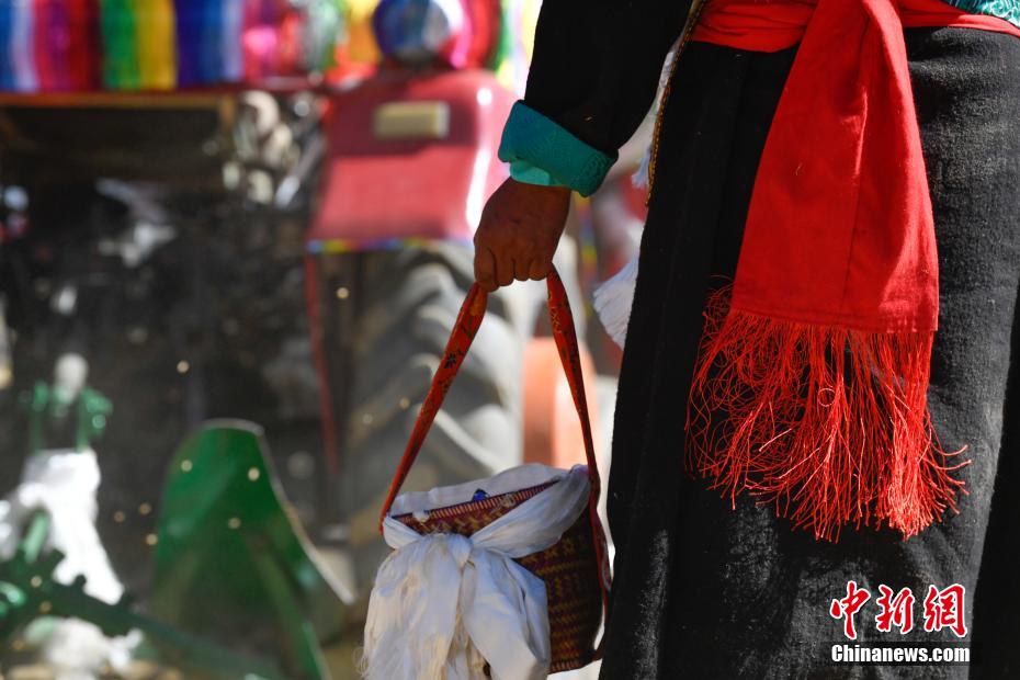 3月16日,西藏拉薩迎來一年一度的傳統(tǒng)春耕儀式。當(dāng)日,拉薩市曲水縣色達(dá)村村民身著節(jié)日盛裝,相聚在田間,載歌載舞,共同迎接春耕第一犁。家家戶戶端著自家的“切瑪”(象征五谷豐登)帶著青稞酒、酥油茶等物品聚在田間,互敬青稞酒,開始撒種,祈求全年風(fēng)調(diào)雨順、五谷豐登。圖為曲水縣色達(dá)村春耕儀式現(xiàn)場(chǎng)。中新社記者 貢嘎來松 攝