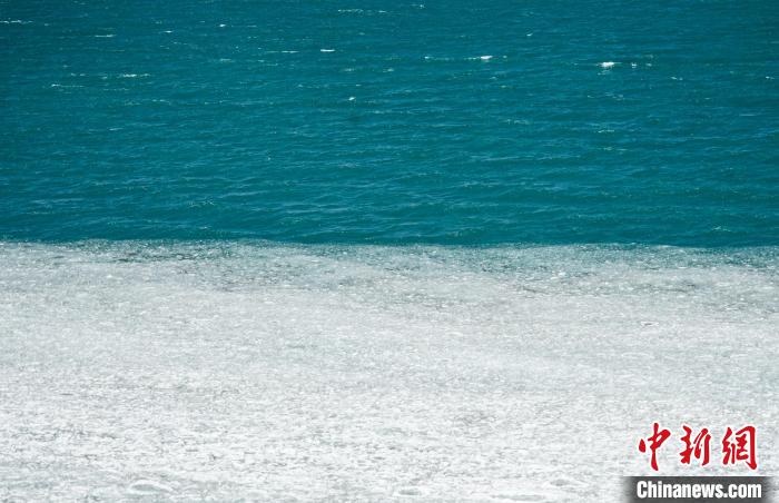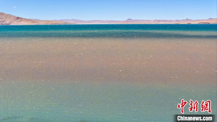 3月27日,航拍西藏自治區(qū)那曲市安多縣錯那湖,湖水交匯處好似“鴛鴦火鍋”。錯那湖是怒江的源頭湖,海拔4600米左右,是世界上海拔最高的淡水湖,也是青藏鐵路沿線著名景點之一。(無人機(jī)照片)中新社記者 馬銘言 攝