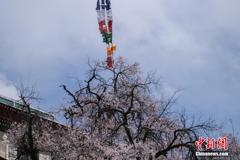 3月下旬,高原已是一片春意。西藏拉薩市區(qū)拉薩河南岸慈覺林的古桃樹進(jìn)入盛花期,3月30日恰逢周末,不少市民游客前往賞花“打卡”,在桃樹下野餐等,享受高原春日風(fēng)光。圖為3月30日,拉薩慈覺林的桃花。桃樹上是藏族民眾在藏歷新年時綁的經(jīng)幡。江飛波 攝