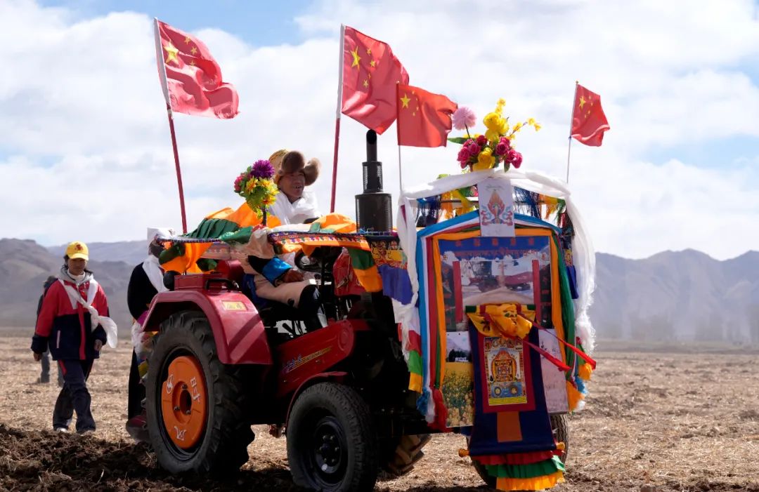 2025年3月16日,西藏拉薩強嘎鄉(xiāng)春耕儀式現(xiàn)場。拖拉機被盛裝打扮,祈求風(fēng)調(diào)雨順、農(nóng)業(yè)豐收。中新社記者 李林 攝