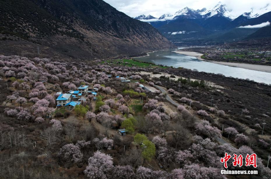 4月4日,西藏林芝市雅魯藏布江沿線桃花風光。每年3月下旬,西藏林芝雅魯藏布江沿線桃花綻放,與雪山、鄉(xiāng)村、田野共同組成高原獨特風光,美不勝收。(無人機照片)