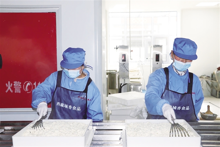 工人正在制作豆腐。圖由西藏域香食品科技有限公司提供