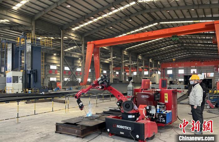 圖為林芝金屬結(jié)構(gòu)廠首臺(tái)全自動(dòng)焊接機(jī)器人。林芝金屬結(jié)構(gòu)廠 供圖