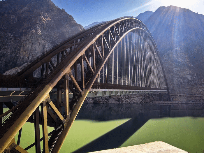 在山南段,列車會(huì)穿過(guò)藏木特大橋,這是目前世界海拔最高、跨度最大的鐵路鋼管混凝土拱橋,橋下江水如綢緞般在峽谷中流淌,兩岸峭壁巍峨聳立。