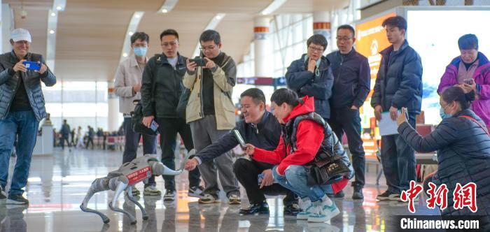 圖為在林芝,國家安全宣傳機(jī)器狗與群眾互動。靜瀾 攝