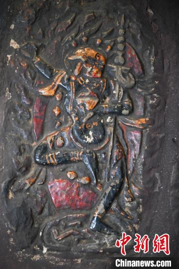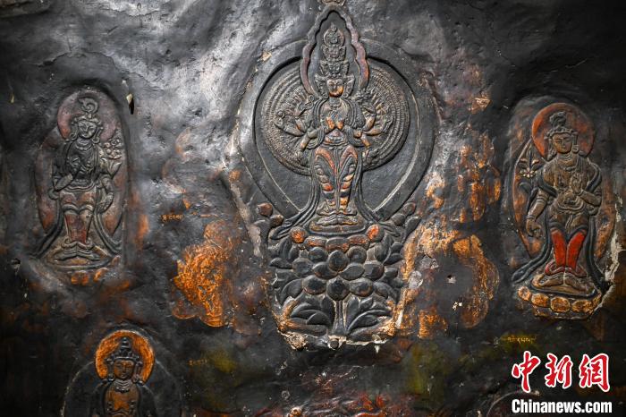 4月27日,記者探訪了當(dāng)雄縣貢堂鄉(xiāng)沖嘎?tīng)柎蹇雕R寺的瑪尼拉康?,斈崂凳窃撍鲁扌卸粗獾脑缙谧诮袒顒?dòng)場(chǎng)所,也是寺院里最古老的建筑。這里保存著令人驚嘆的石刻造像墻,這些石刻距今已有三百年歷史?,斈崂低庥^普通,但其室內(nèi)六面墻上整齊地貼滿了浮雕石刻板,共計(jì)1213塊(僅一塊缺失)。石刻內(nèi)容豐富,涵蓋了藏傳佛教各宗各派的本尊、祖師、佛母菩薩等,造型多姿多樣,線條清晰流暢。這處石刻造像墻對(duì)于研究西藏傳統(tǒng)雕刻、藏傳佛教以及歷史具有重大意義。中新社記者 貢嘎來(lái)松 攝
