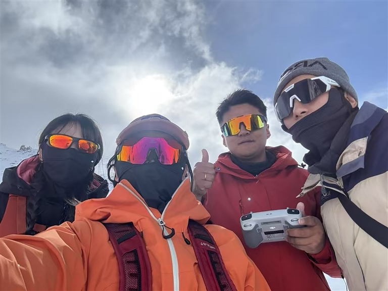 “在特殊的環(huán)境下,拍攝工作充滿了各種挑戰(zhàn)。我要時(shí)刻觀察現(xiàn)場(chǎng)情況,及時(shí)進(jìn)行抓拍,有時(shí)候?yàn)榱俗ヅ木实溺R頭,不得不與其他人間隔一定的距離,拍攝結(jié)束還要趕上大家的腳步。我印象最深刻的是過(guò)了雪線之后的那段陡坡,我們既要保證攀爬的安全,又要找拍攝角度,還是挺累的?!卑⑼岈斦f(shuō)。