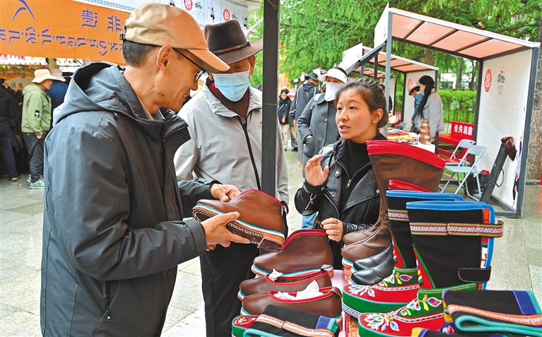 近日,“雪域古城·圣地拉薩”文化旅游節(jié)非遺主題活動在拉薩宗角祿康公園內(nèi)開展,現(xiàn)場人潮涌動。非遺藏戲演員身著華服,以高亢唱腔演繹《朗薩雯蚌》選段,觀眾圍坐沉浸于雪域藝術(shù)魅力。非遺展銷區(qū)陳列著木雕、牛皮制品等傳統(tǒng)手工藝品?;顒尤嬲宫F(xiàn)了非遺保護(hù)傳承與利用的新進(jìn)展和新成效。