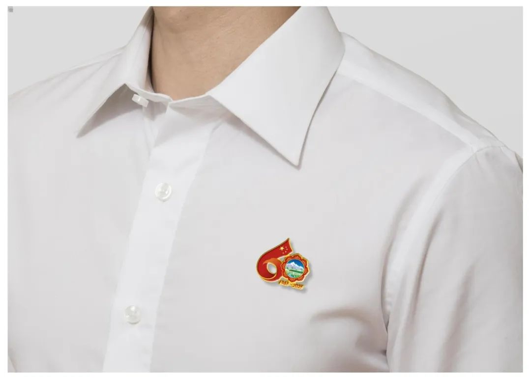 西藏自治區(qū)成立60周年慶?;顒踊諛耸怯晌逍羌t旗延展出的飄帶與格?;ò戥h(huán)構成的數字“60”造型。飄揚的五星紅旗象征著繁榮昌盛的祖國母親對西藏的關懷與呵護,使西藏在砥礪奮進的60年中綻放出燦爛的格?;ǘ?。西藏復興號、現(xiàn)代化新農村、風力發(fā)電、雪山、藏羚羊等代表了60年來西藏社會主義現(xiàn)代化建設取得的豐碩成果?!?965-2025”代表西藏自治區(qū)成立60周年。標識兼具中華民族精神與西藏歷史底蘊,整體色彩使用了國旗紅,營造出喜慶、熱烈、祥和的氛圍。