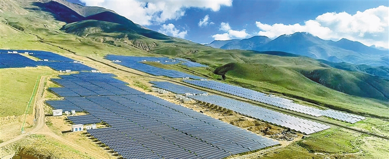在措美縣城東、西兩側(cè)的山坡上,一排排光伏發(fā)電板在陽光的照射下熠熠生輝。措美縣全年日照強(qiáng)、降水少,年均日照時(shí)數(shù)超2800小時(shí),擁有豐富的太陽能資源。近年來,措美縣大力發(fā)展光伏發(fā)電產(chǎn)業(yè),實(shí)現(xiàn)綠色低碳發(fā)展,讓高原變身“綠電藍(lán)?!?。截至目前,措美縣共建設(shè)有光伏電站3座,總裝機(jī)容量達(dá)到70MW。自2017年第一座光伏電站并網(wǎng)發(fā)電至2024年底,累計(jì)發(fā)電量超3.4億千瓦時(shí),相當(dāng)于節(jié)約標(biāo)準(zhǔn)煤約4.2萬噸,減少二氧化碳排放約33.9萬噸。
