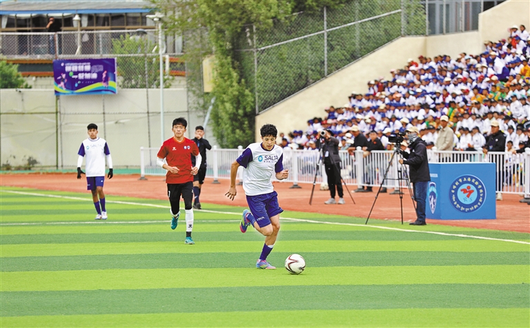 以球為媒,“球”同存“誼”。5月20日下午,中國日喀則市珠峰雪鷹隊與阿根廷薩爾塔普納隊在日喀則市上海實驗學(xué)校體育場上演了一場跨越山海的青少年足球友誼賽。賽場上,雙方球員迅速進(jìn)入狀態(tài),團(tuán)結(jié)配合、積極拼搶,用細(xì)膩的腳法,或急停、或變向、或假動作,輕松晃過對手,射門得分,給觀眾呈現(xiàn)了一場精彩的足球比賽。