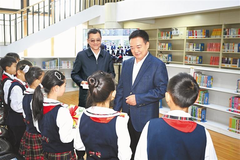 初夏,萬物并秀,生機(jī)勃發(fā),拉薩市實驗小學(xué)書聲瑯瑯。王君正走進(jìn)校園,察看學(xué)校環(huán)境,參觀自然、閱讀、書法、體育等教育成果展示,了解學(xué)校歷史沿革、建設(shè)發(fā)展、教育教學(xué)等情況。他指出,習(xí)近平總書記高度重視、親切關(guān)懷少年兒童和少先隊工作,多次參加少先隊活動,發(fā)表重要講話、作出重要指示。5月27日,習(xí)近平總書記致信祝賀中國少年先鋒隊第九次全國代表大會召開,殷切寄語廣大少年兒童,飽含著對大家的深切關(guān)愛。要加強(qiáng)愛國主義教育,講好思政課,著力講好黨的故事、革命的故事、英雄的故事,時刻把祖國和人民放在心中,不忘初心、童心向黨,從小聽黨話、感黨恩、跟黨走;要積極推廣國家通用語言文字,把鑄牢中華民族共同體意識根植少年兒童心靈深處,引導(dǎo)他們爭做民族團(tuán)結(jié)的小石榴籽,爭當(dāng)學(xué)習(xí)和踐行社會主義核心價值觀的小模范。圖書館內(nèi),“紅領(lǐng)巾小書蟲”讀書分享活動正在進(jìn)行,孩子們圍坐在一起,與定日縣長所鄉(xiāng)完全小學(xué)學(xué)生視頻連線,共同分享喜歡的書籍,王君正認(rèn)真傾聽、親切詢問,向孩子們贈送書籍。“祖國的未來和希望在你們身上,要熱愛祖國、好好學(xué)習(xí)、天天向上,從小培養(yǎng)良好的道德情操?!蓖蹙膭钏麄冋f,要多讀書、讀好書,從書中汲取智慧和營養(yǎng),將來做對國家、對人民、對社會有用的人。