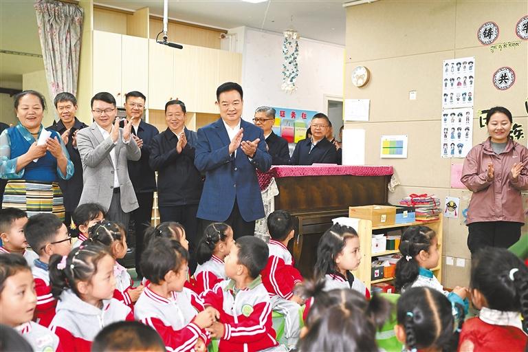 “六一”國際兒童節(jié)到來之際,自治區(qū)黨委書記王君正在拉薩調(diào)研少年兒童教育教學(xué)和少先隊工作。這是王君正來到自治區(qū)實驗幼兒園,了解特色課程開展情況。本報記者 旦增西旦 攝