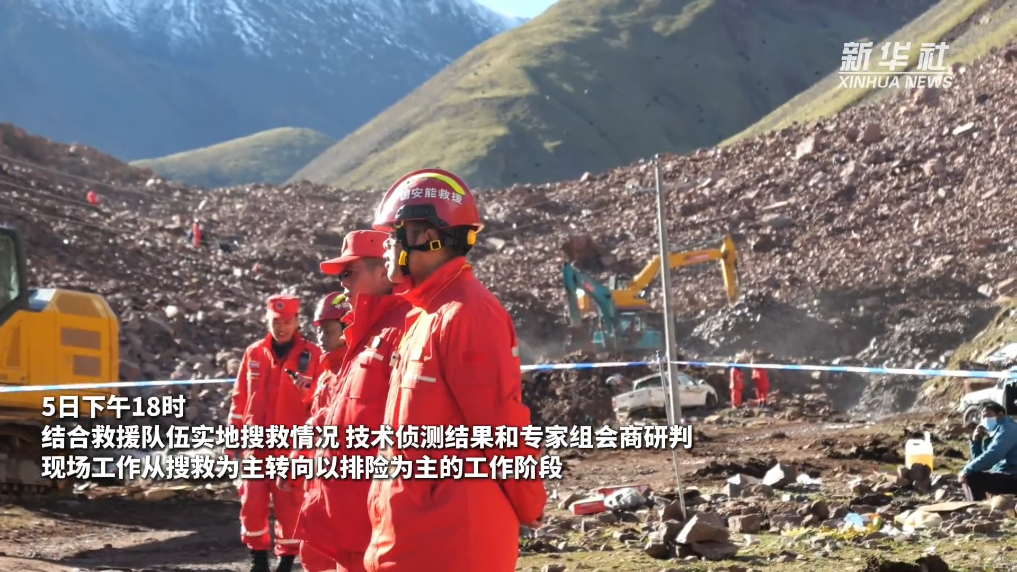 5日18時,結(jié)合救援隊伍實地搜救情況、技術(shù)偵測結(jié)果和專家組會商研判,現(xiàn)場工作從搜救為主轉(zhuǎn)向以排險為主的工作階段。