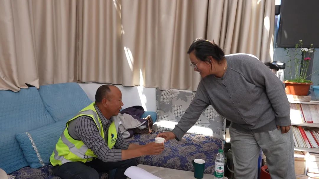 每天施工的間隙,工友們都會到村委會,給手機(jī)充充電、在沙發(fā)上靠一會兒,一點(diǎn)不拘束,愜意又放松。普布普尺和駐村工作隊(duì)員則會準(zhǔn)備好開水和零食,熱情地招待大家。