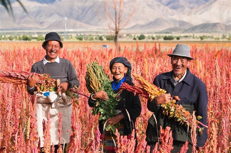 上海市援藏重點(diǎn)項(xiàng)目——薩迦縣高原藜麥種植農(nóng)戶喜獲藜麥豐收。