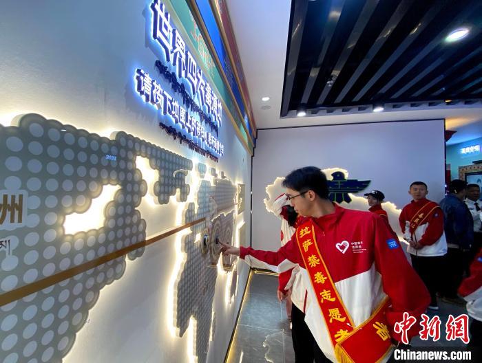 圖為6月26日,禁毒志愿者在西藏自治區(qū)禁毒教育基地參與互動(dòng)體驗(yàn)。李林 攝