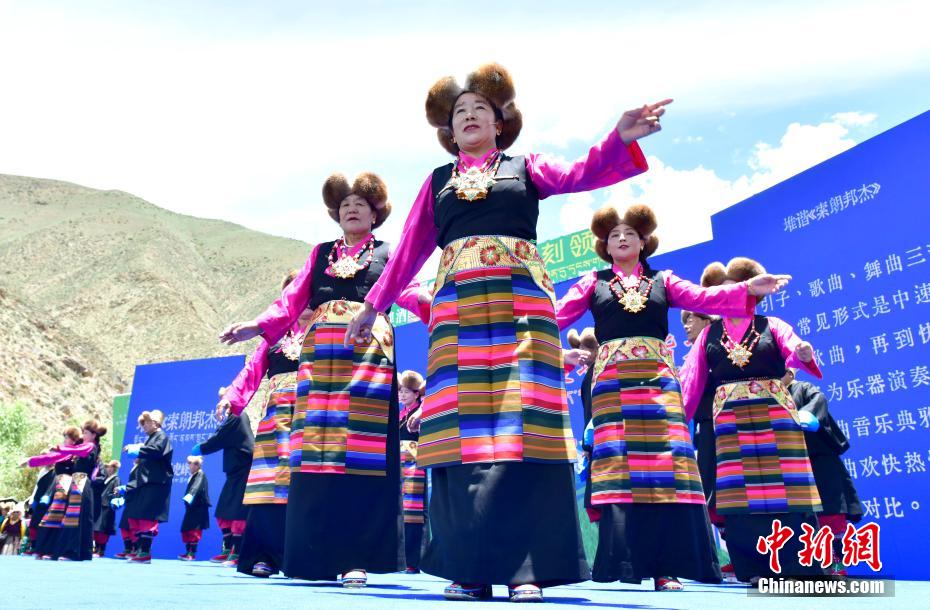 6月28日,拉薩首屆林卡囊瑪堆諧大賽在達孜區(qū)舉辦?,F(xiàn)場,經(jīng)過前期海選入圍的19支隊伍依次上臺競技。囊瑪和堆諧,合稱囊瑪堆諧,是西藏民間歌舞發(fā)展到較高層次、集歌舞樂為一體的珍貴傳統(tǒng)文化藝術(shù)遺產(chǎn),深受當?shù)孛癖姷南矏叟c追捧。圖為首屆林卡囊瑪堆諧大賽比賽現(xiàn)場。