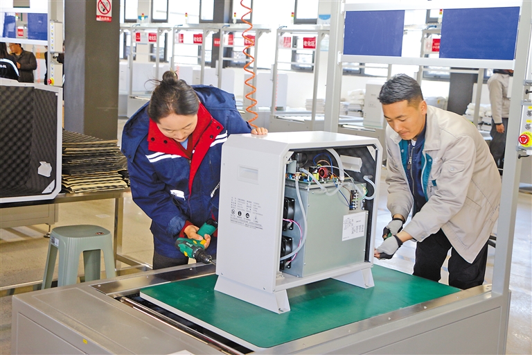 湖北援藏企業(yè)西藏清匠電器科技有限公司的工人正在組裝制氧機(jī)。